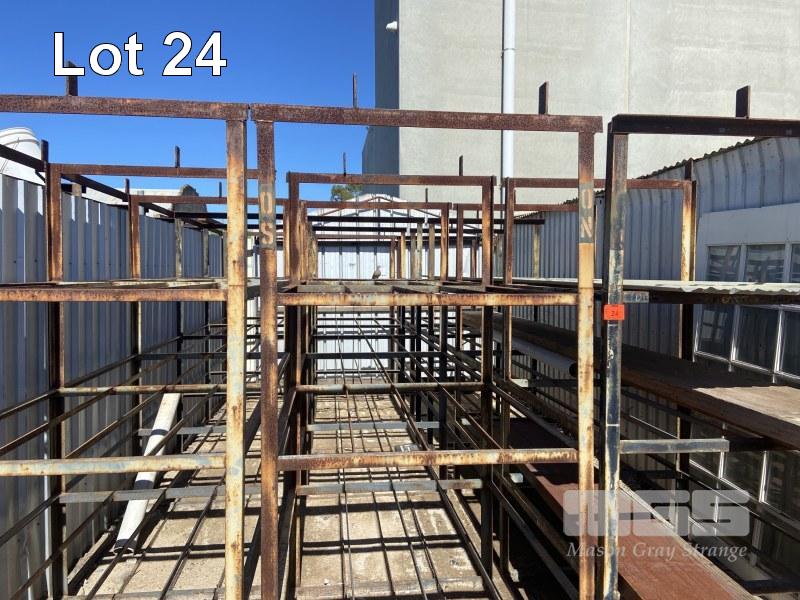 3 x ANGLE STEEL RACKS, 5 x 1m, 4 TIER, SUIT TIMBER STORAGE