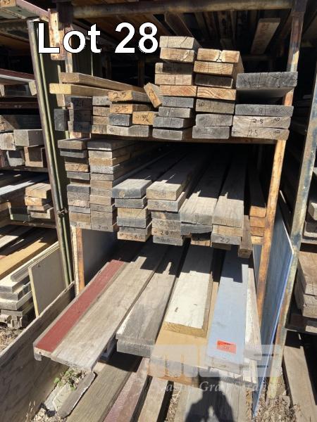 STEEL RACK, 5m & TIMBER STOCK INCLUDING PLANKS, PINE, ETC
