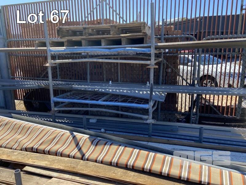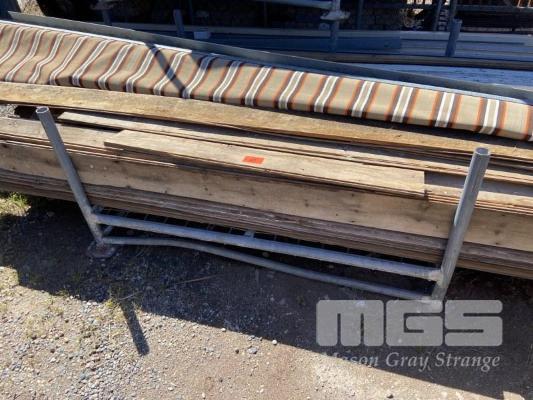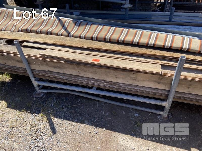 4 x STACKING PIPE STILLAGES, GALV CHANNEL, TIMBER T&G BOARDS, IRON SHEETS & AWNING