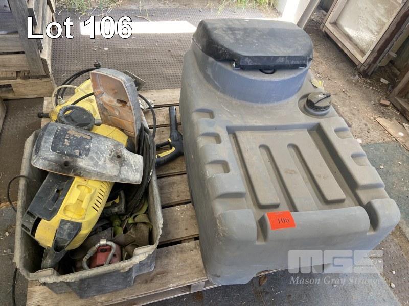 200 LITRE POLY DIESEL TANK, 12V & KARCHER PRESSURE CLEANER PARTS