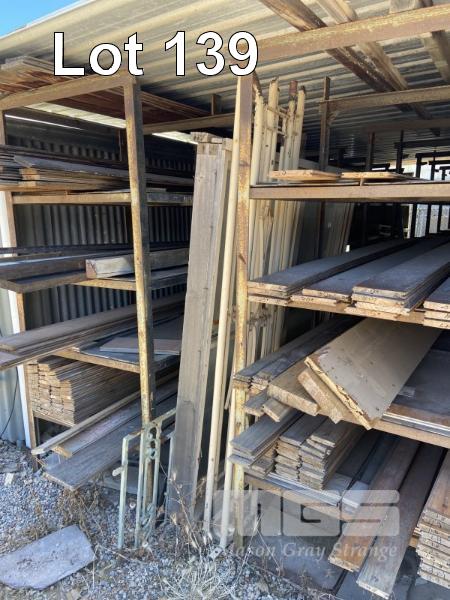 LARGE QUANTITY T&G TIMBERS, ASSORTED IN RACKS,