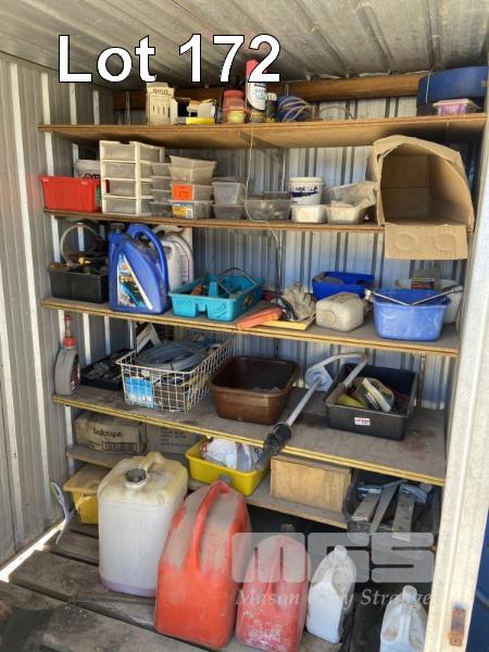 TOOLS, OILS, HARDWARE, ETC CONTENTS OF SHED