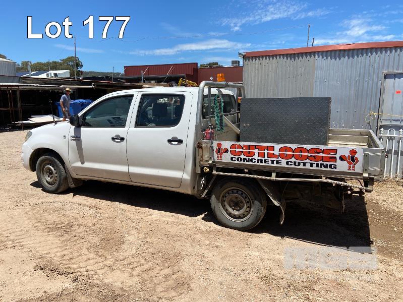 2010 TOYOTA HILUX KUN16R DUAL CAB TRAYTOP UTILITY 4x2 REG: S604 AHD VIN: MR0EZ12G904009060 ODO: 198,234kms SHOWING 3 LITRE, TURBO DIESEL, 4x2 ALLOY TRAY TOP TOOL BOX & TOW PACK