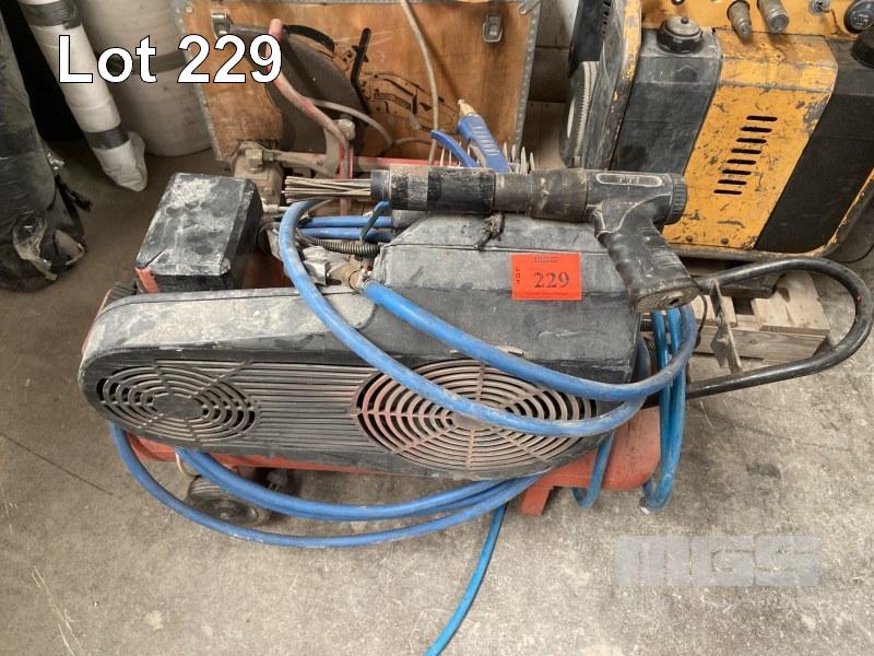PORTABLE AIR COMPRESSOR, INGERSOLL-RAND 14CFM APPROX 240V & AIR NEEDLE GUN & TYRE INFLATOR