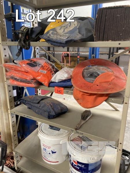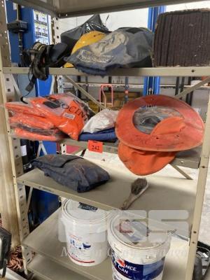 PPE SHIRTS, HATS, HARNESSES, ETC, 3 x SHELVES & 3 x ROOF WORKER KITS