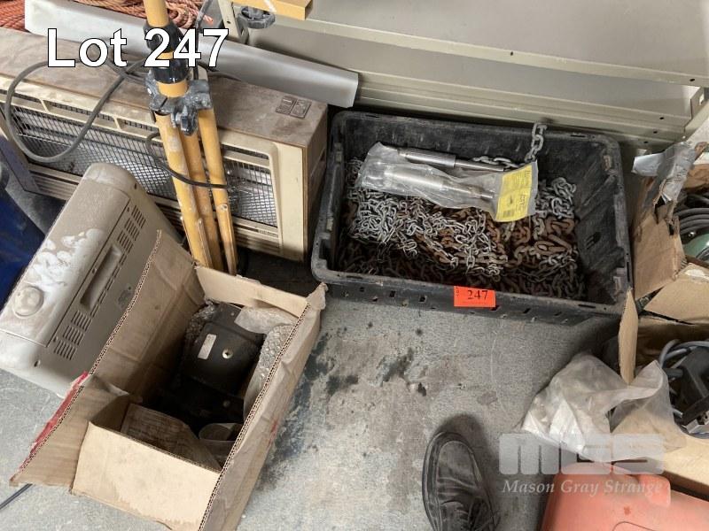 ASSORTED CHAINS, ROPE, HEATERS & LEADLIGHT, 1 x TUB