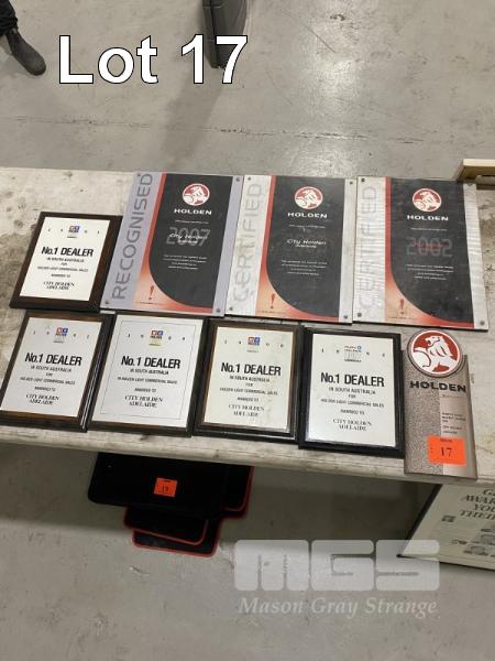 ASSORTED HOLDEN MEMORABILIA , COLLECTION OF No. 1 DEALER AWARDS, YEARS: 1989, 1990, 1991, 1993, 1994