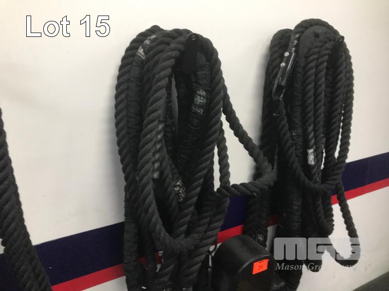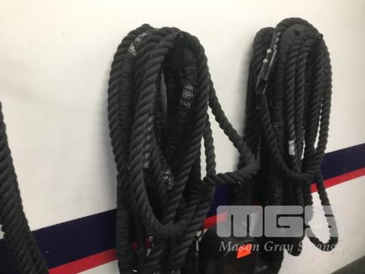 2 X LENGTHS OF HEAVY DUTY CLIMBING & LIGHT BATTLE ROPES WITH WALL MOUNTING FITTINGS