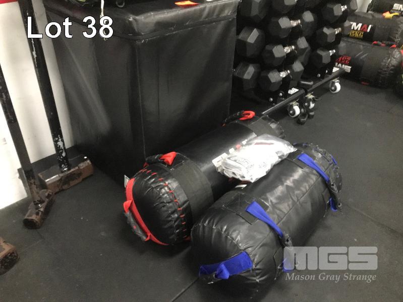 GYM APPARATUS, PADDED SOFT BOX, MMA SHIELD & GLOVES & SET OF 4 SANDBAGS, 10kg, 15kg, 20kg & 25kg