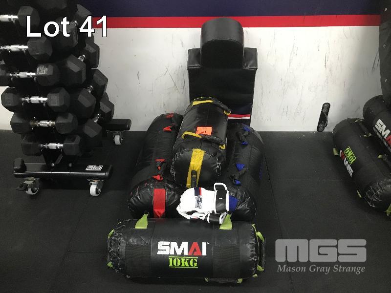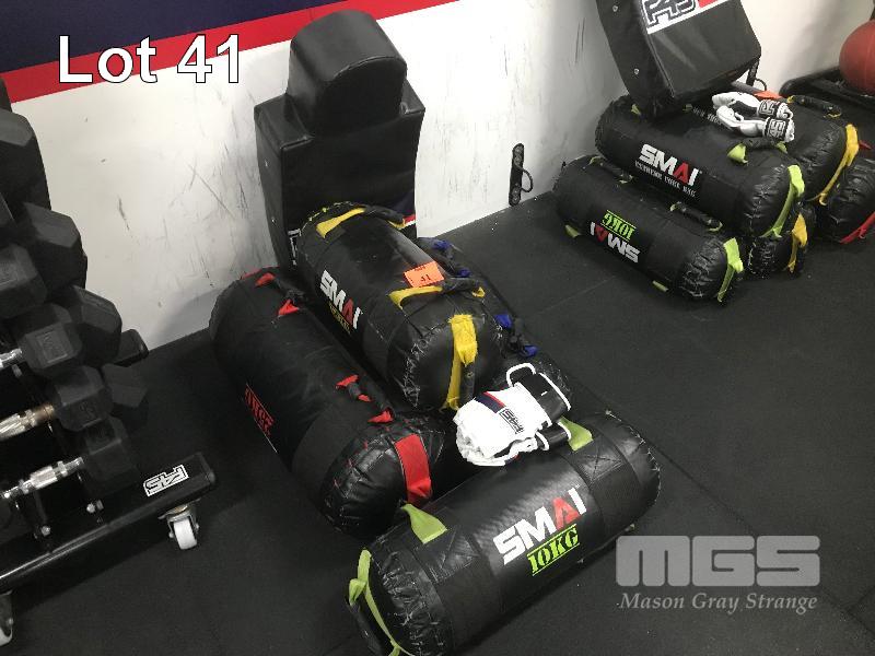 GYM EQUIPMENT, MMA SHIELD & GLOVES, SET OF 4 SANDBAGS, 10kg, 15kg, 20kg & 25kg