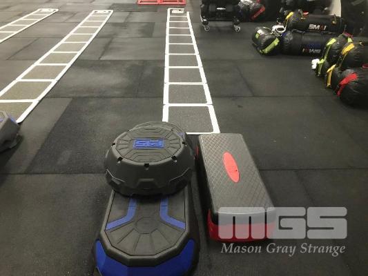 2 X PLASTIC STEP-UPS WITH PAIR OF EXTRA HEIGHT BASES & RUBBER AGILITY LADDER