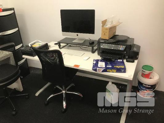 WHITE DESK & GAS LIFT CHAIR (COMPUTER & PRINTER NOT INCLUDED)