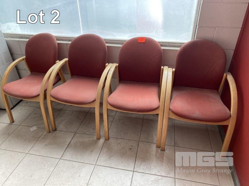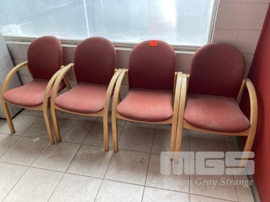 4 x RECEPTION CHAIRS, RED FABRIC