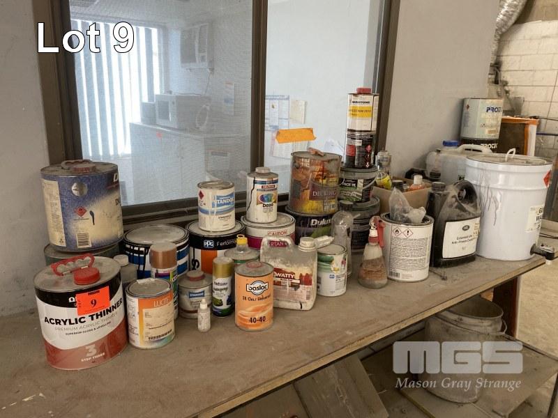 ASSORTED THINNERS, PAINTS & AUTO PRODUCTS, ETC