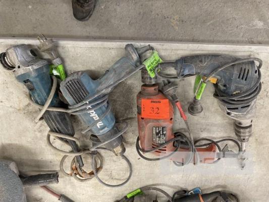2 x DRILLS, GRINDER & HOT AIR GUN, 240V