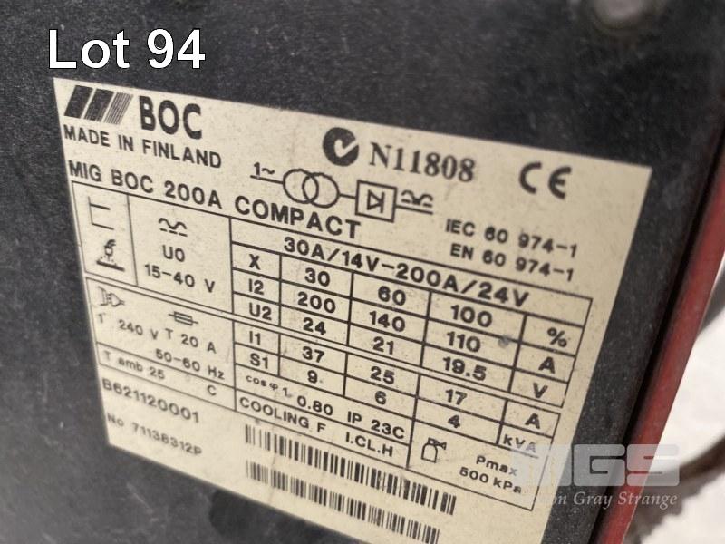 MIG WELDER, BOC, MIG-200C, COMPACT WITH REG. LEADS AND HAND PIECE, 240V