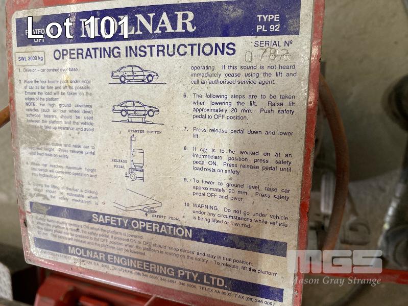 STEEL FLOOR HOIST, MOLNAR MOD: PL-92 3,000kg, 240V