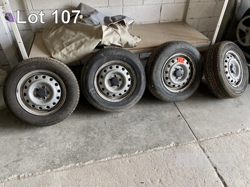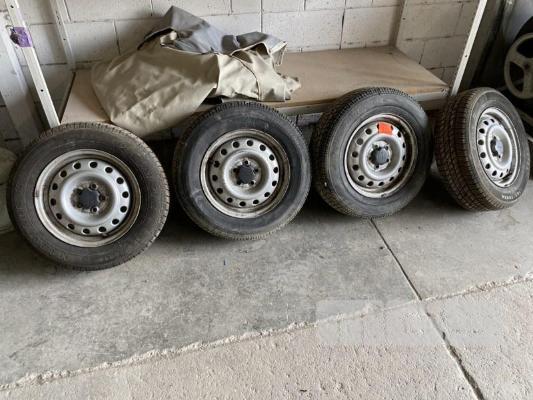 4 x RIMS & TYRES, MAZDA, 5 STUD STEEL RIMS, BRIDGESTONE 185/70R14 TYRES