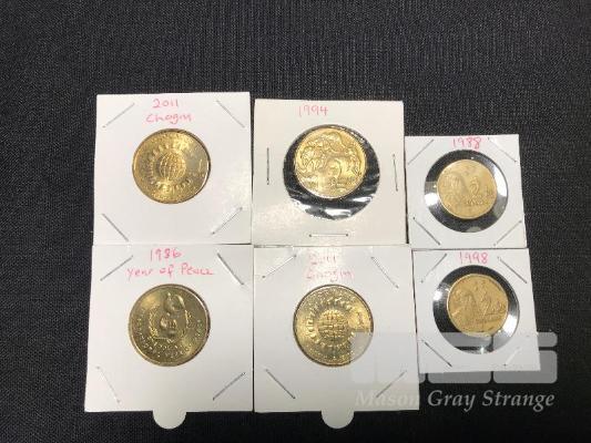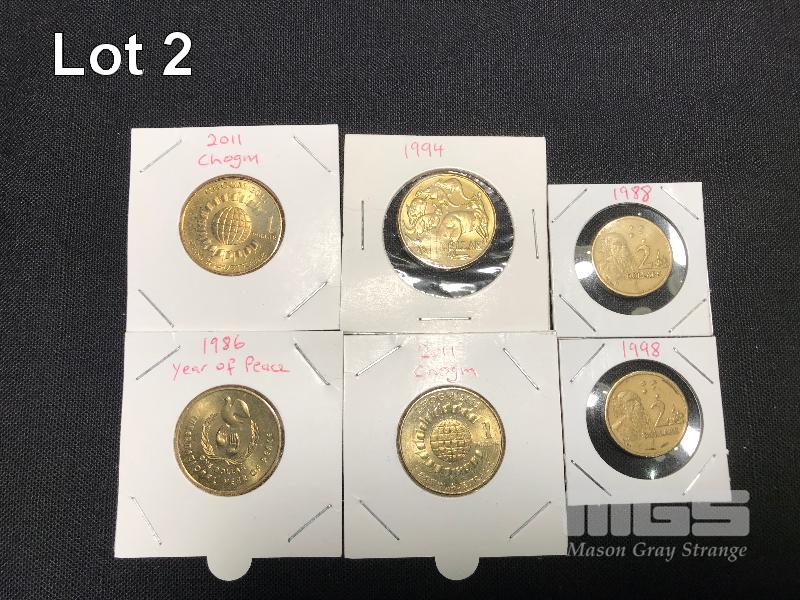 6 X AUSTRALIAN COINS 4 X 1 DOLLAR COINS INC 2 X CHOGM 2011 (UNC & aUNC) 1 X 1986 INTERNATIONAL YEAR OF PEACE, 1 X 1994 MOB OF ROOS 2 X 1988 HH 2 DOLLAR COINS