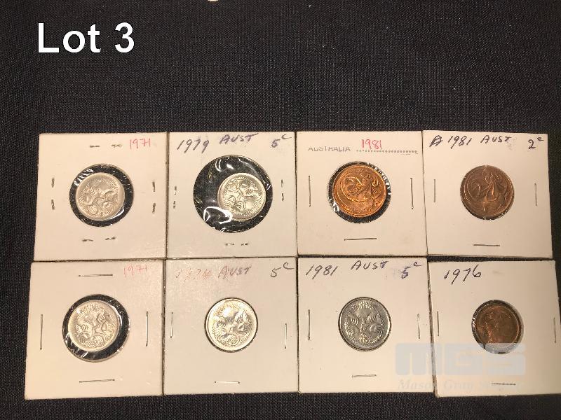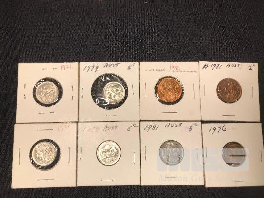 8 X AUSTRALIAN DECIMAL COINS INC 5 X 5 CENT PIECES 2 X 1971 1 X 1974 & 1 X 1981, 2 X 1981 2 CENT PIECES & 1 X 1976 ONE CENT PIECES