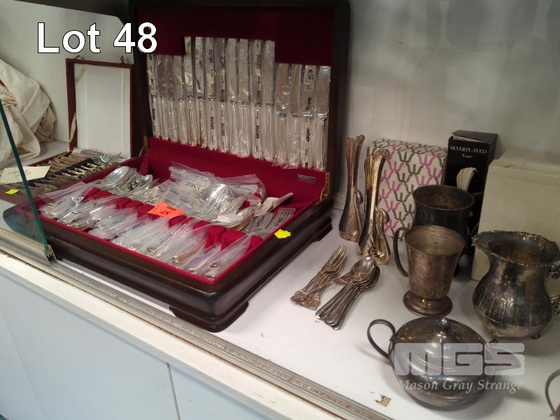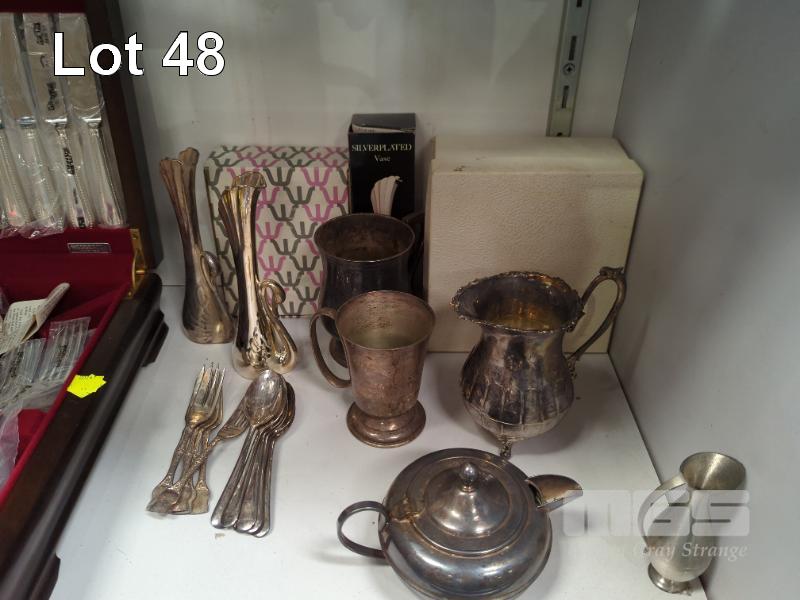BUTLER SHEFFIELD EPNS CUTLERY CANTEEN, GROSVENOR EPNS FISH CUTLERY SET, EPNS TANKARD, VASES, ETC