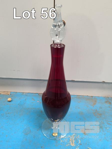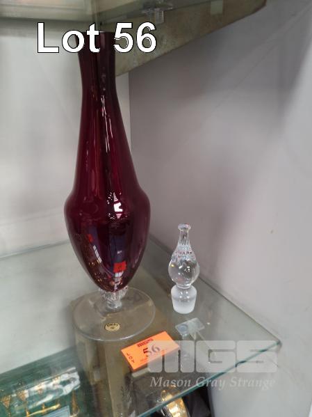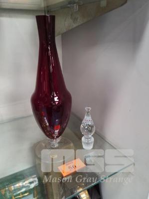BOHEMIA RUBY GLASS VASE WITH STOPPER, 33cm