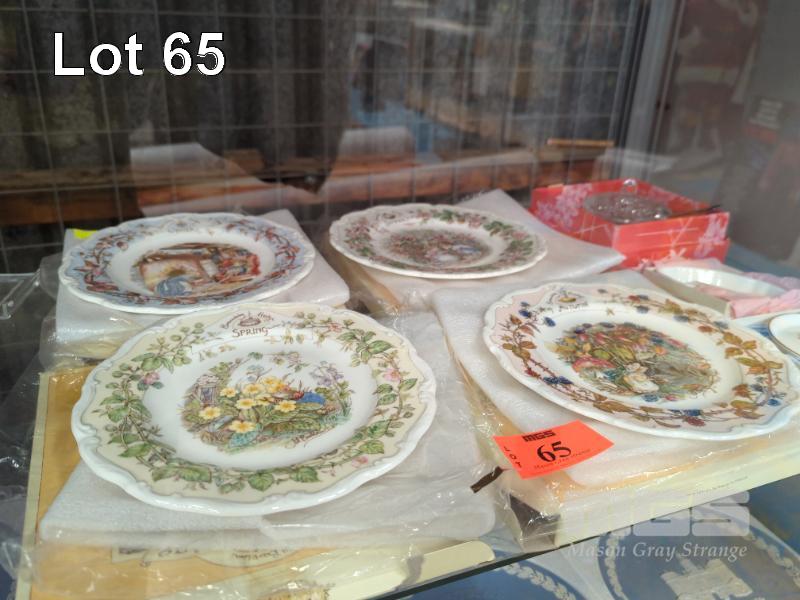4 x ROYAL DOULTON SEASON COLLECTION DISPLAY PLATES, 2 x SMALL WEDGWOOD PLATES & BOHEMIA LIDDED DISH