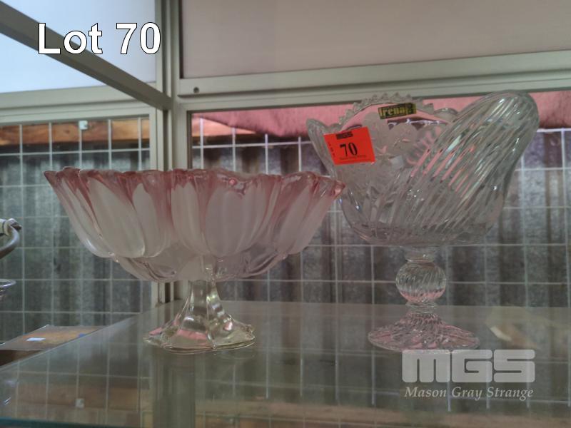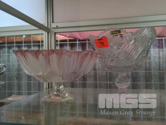 2 x FOOTED BOWLS, IRENA POLISH CRYSTAL & PINK GLASS BOWL