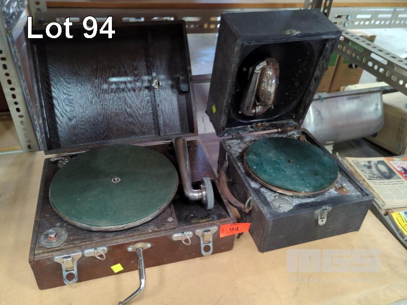 2 x CASED PORTABLE GRAMOPHONE, BRANDS UNKNOWN
