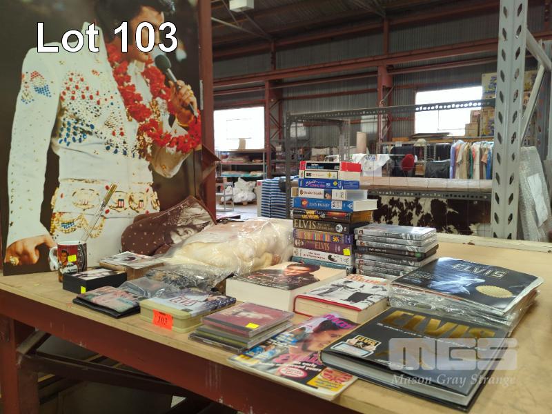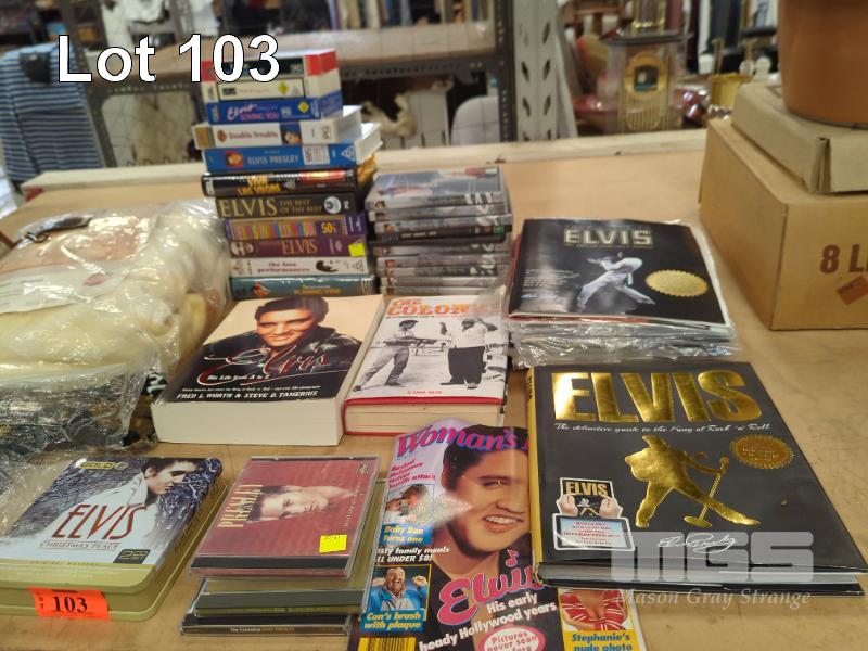 ASSORTED ELVIS MEMORABILIA INC BLOCK MOUNT PHOTO, BOOKS, CD'S, COASTERS, DVD'S VHS VIDEOS, MAGAZINES, ETC
