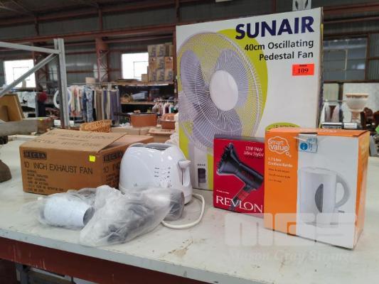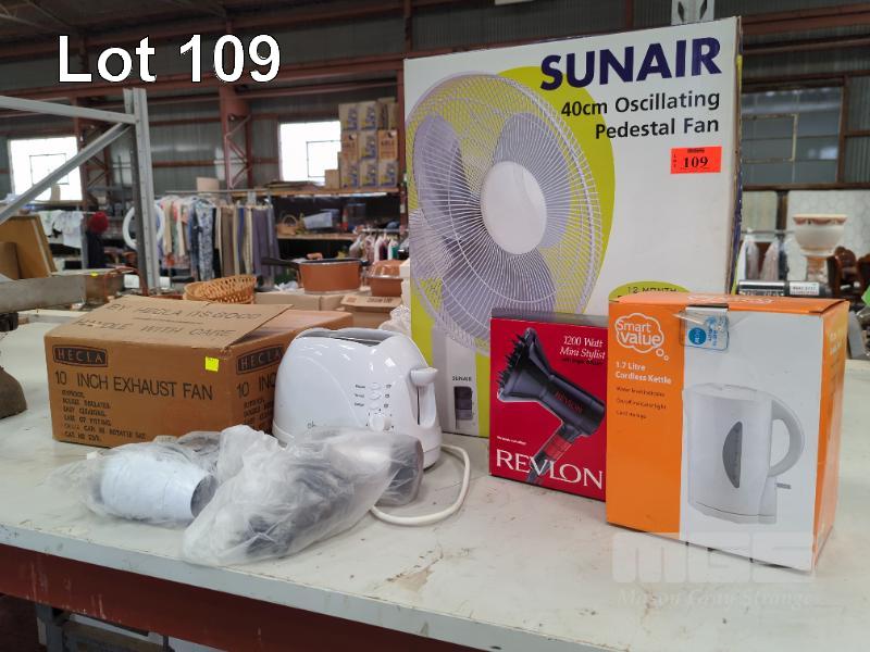 ASSORTED ELECTRICAL, OSCILLATING FAN, 40cm, 10" EXHASUT FAN, TOASTER, KETTLE & HAIR STYLIST