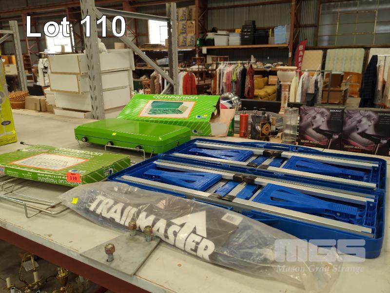 CHAMPION 3 BURNER GAS STOVE & ACCESSORIES, TRAIL MASTER CAMP BED, CAMP TABLE & CHAIR SET