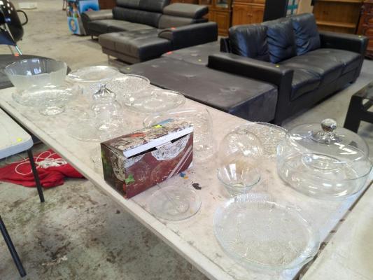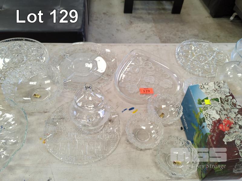 ASSORTED GLASS & CRYSTAL BOWLS, PLATES, LIDDED DISHES, ETC