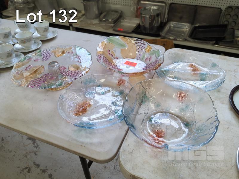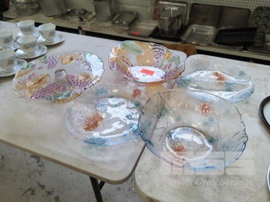 SOGA COLOURED GLASS CAKE PLATE, BOWLS & PLATE