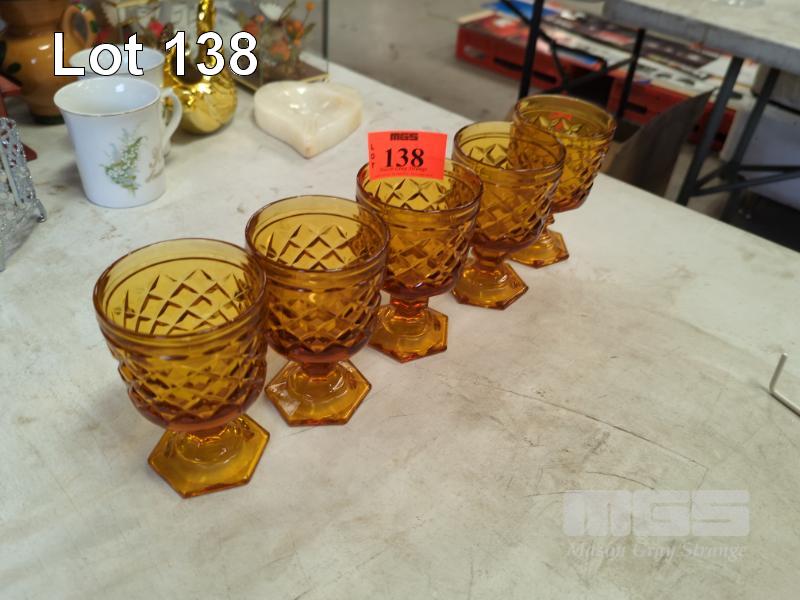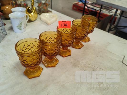 SET 5 AMBER DEPRESSION GLASS GOBLETS
