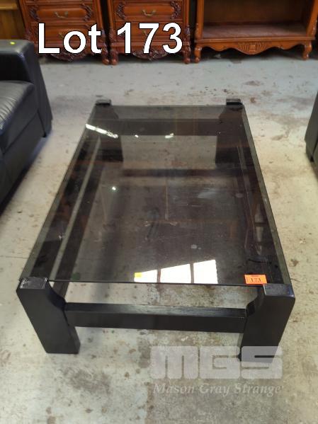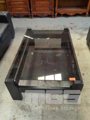 BLACK COFFEE TABLE, TIMBER FRAMED, GLASS TOP