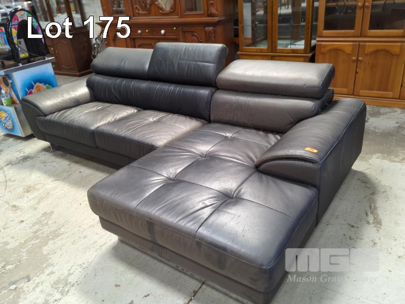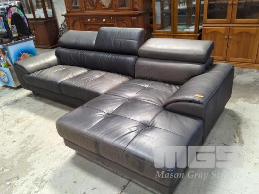 BLACK LEATHER CORNER LOUNGE SUITE WITH ADJUSTABLE HEAD RESTS