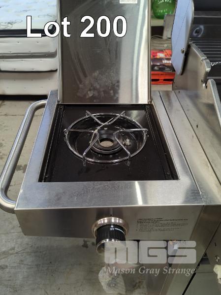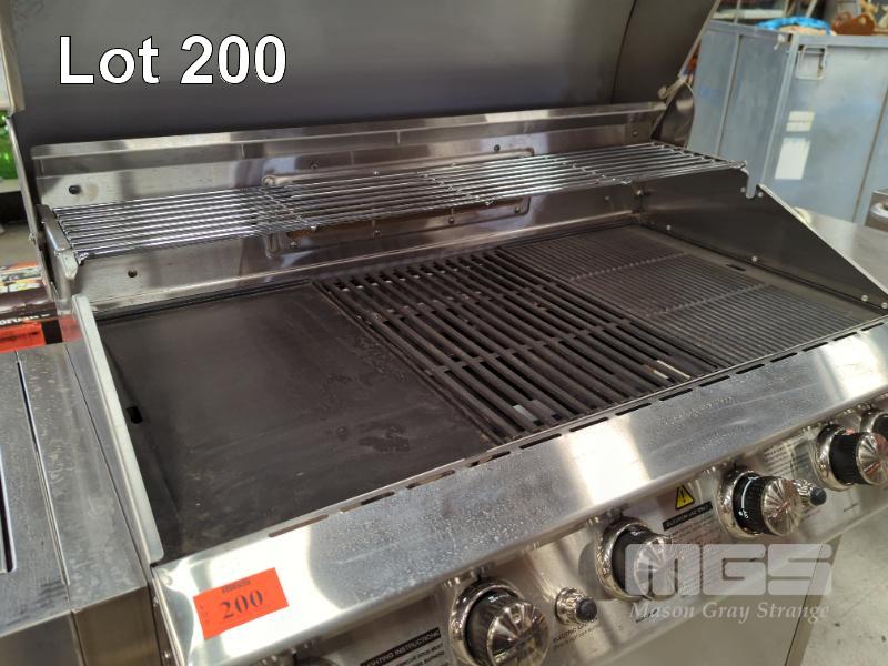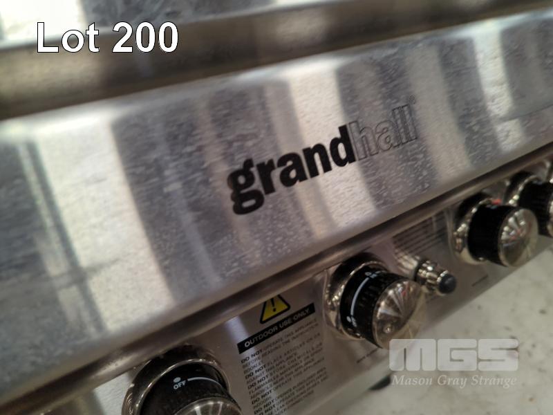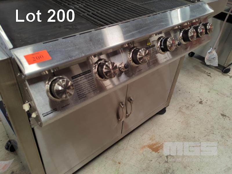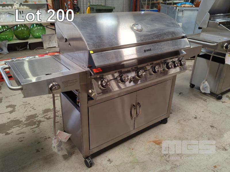 GRANDHALL PREMIUM 6S STAINLESS STEEL COVERED COOKER GAS BBQ 6-BURNER WITH SIDE BURNER, BACKBURNER & CABINET TROLLEY. ** DISPLAY MODEL - ASSEMBLED ** RRP $1,799