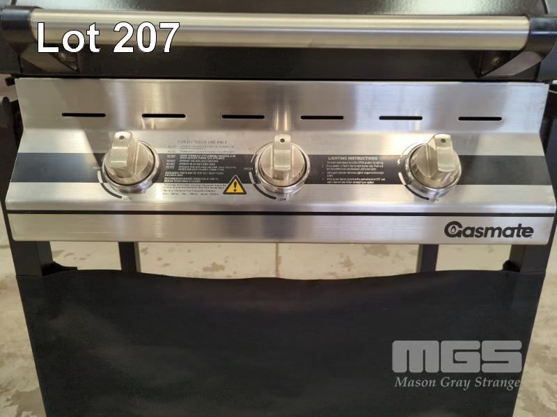 GASMATE VEGA MOBILE HOODED GAS BBQ. 3-BURNER IN VITREOUS ENAMEL WITH STAINLESS STEEL FASCIA. NEW IN BOX. RRP $399