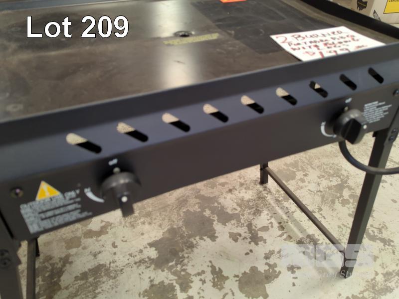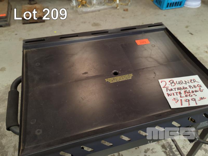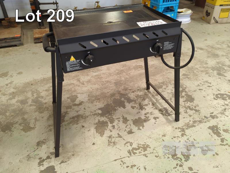 PORTABLE 2-BURNER SOLID PLATE GAS BBQ WITH FOLDING LEGS.