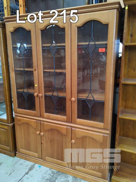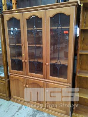 PINE KITCHEN DRESSER, 6 DOOR INC 3 x GLASS LEADLIGHT PANEL DOORS