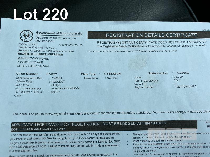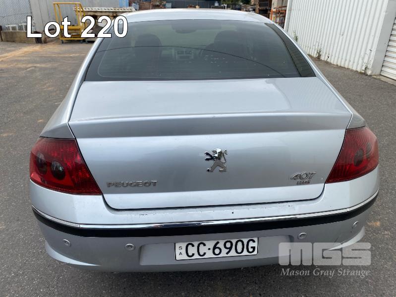 2006 PEUGEOT 407 HDi SEDAN REG: CC 690G (SA) VIN: VF36DRHR21485504 ENG: 10DYVD4013203 ODO: 206,814kms SHOWING 4 CYLINDER, 6 SPEED MANUAL TRANSMISSION, DIESEL, SILVER DUCO, 4 DOORS, 5 SEAT, AIR BAG, AIR CON, ALLOY WHEELS, CENTRAL LOCKING, CRUISE CONTROL, FOG LAMPS, IMMOBILISER, POWER STEERING, POWER WINDOWS, ROOF RACKS, SPARE WHEEL (WITH PAPERS, WITH 2 KEY/S, WITH OWNER'S MANUAL, WITH SERVICE BOOKS)