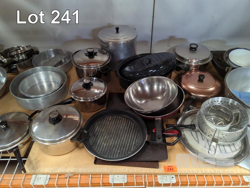 ASSORTED COOKWARE, STOCK POTS, BAKING TRAYS, ETC
