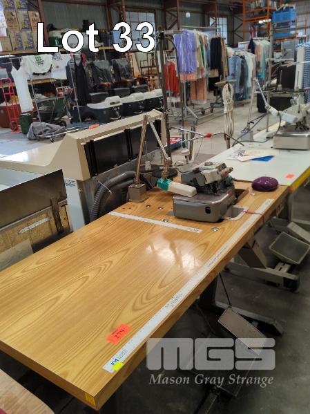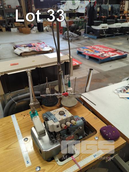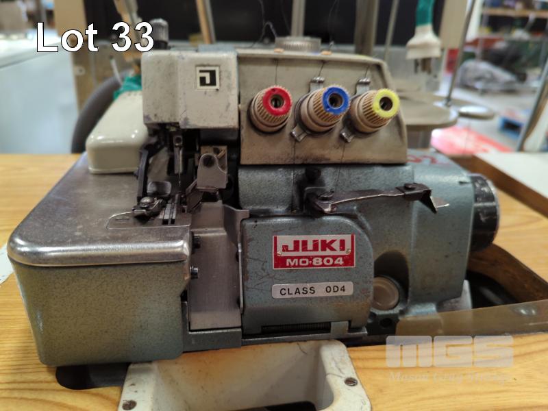JUKI MO-804 INDUSTRIAL OVERLOCKER WITH TREADLE CONTROL PEDAL ON H/D BENCH