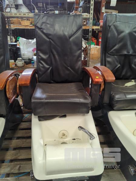 PEDICURE SPA CHAIR, BLACK VINYL TIMBER ARMREST WITH REMOTE