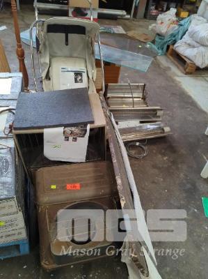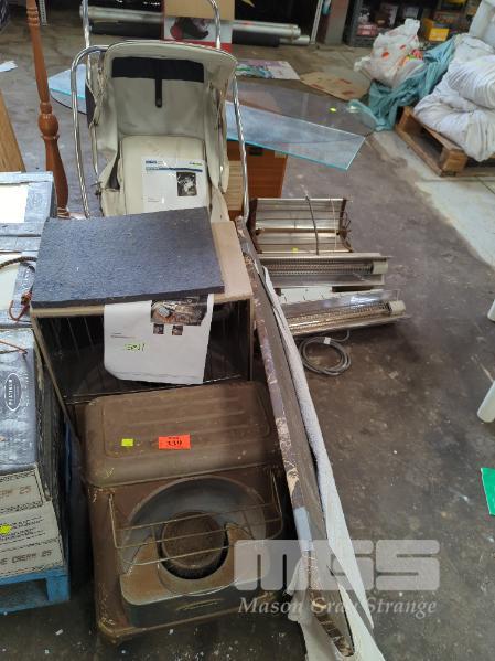 VINTAGE HEATERS, PRAM, SHELF UNITS, ETC