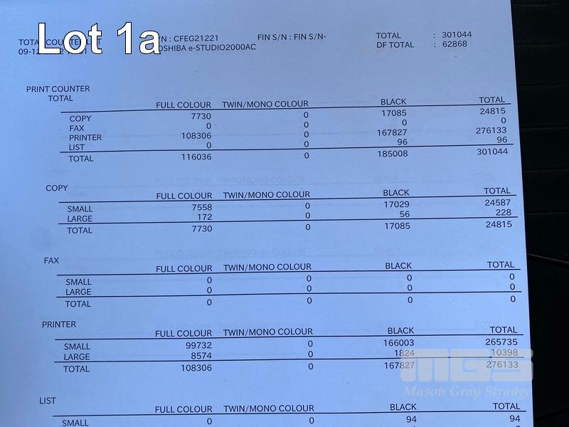 PHOTOCOPIER, TOSHIBA e-STUDIO 2000AC COLOUR, ADF, PRINTER USB & NETWORK PORTS, 116,036 COLOUR & 185,008 B&W COPIES SHOWING (TEST PAGE ATTACHED) S/N:CFEG21221