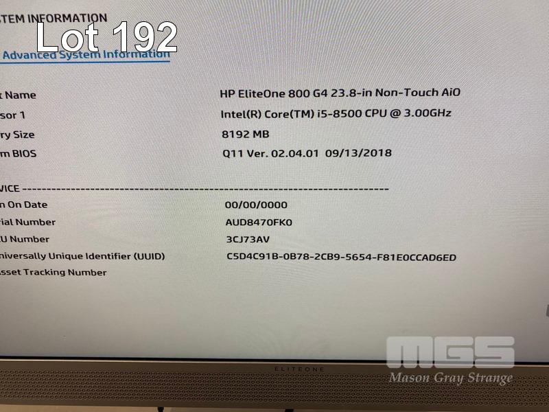 ALL-IN-ONE PC, HP ELITEONE 800 G4 (3CJ73AV), CORE i5 8500 (8TH GEN) @ 3GHz, 8GB DDR4 RAM, 256GB NVMe M.2 SSD, INBUILT 23.8" WIDESCREEN (1920x1080), INTEL UHD GRAPHICS, Wi-Fi, 6 x USB, 1 x USB-C, WINDOWS 11 PRO INSTALLED, KEYBOARD & MOUSE S/N:AUD8470FK0