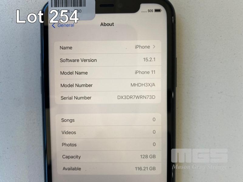 APPLE iPHONE 11, 128GB, BLACK, MODEL MHDA3X/A (NO CHARGER, NO CABLE) S/N:DX3DR7WRN73D