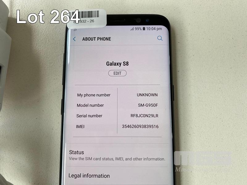 SAMSUNG GALAXY S8 SMARTPHONE, MODEL SM-G950F, 64GB WITH USB-C CHARGER S/N:RF8JC0N29LR